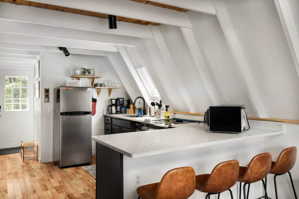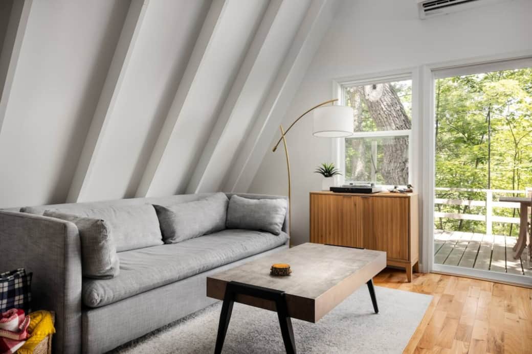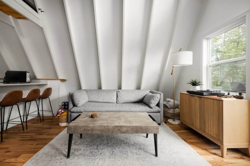 Step into your mountain sanctuary. Open-concept living area blends modern comfort with the natural beauty of the Shenandoah Valley just outside the door. Whether you're relaxing on the sofa or enjoying the view, this is the perfect spot to slow down.